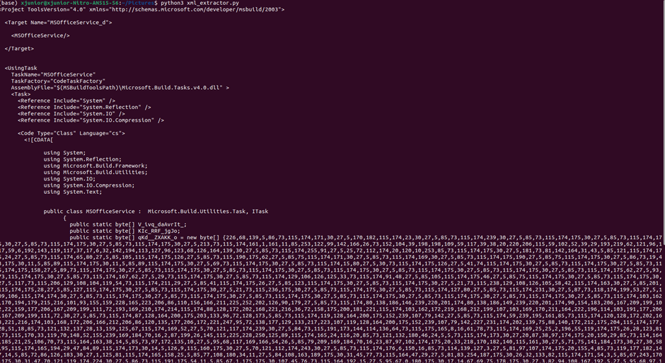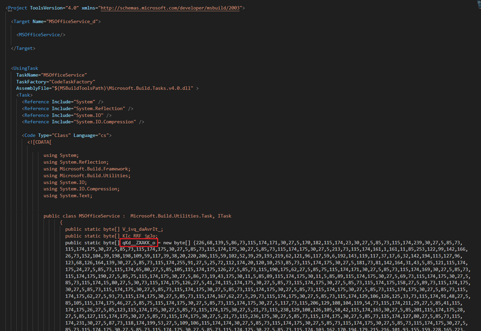 In the previous section we’ve seen that the side-loaded WWLIB.dll decrypted and dropped an XML in the temp directory that was going to be executed by MsBuild.