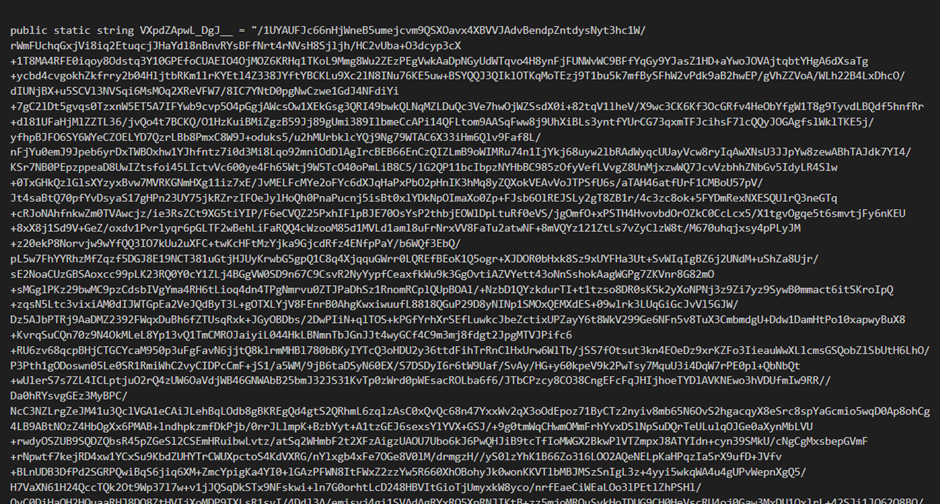 This function simply takes the contents of the previously initialised variable “Dat10dje1”, decodes it from its base64 form and loads it into memory.