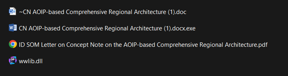 As discussed in the original Group-IB research blog, DarkPink APT uses ISO files as a phishing mechanism. And this case is not much different in terms of structure.The ISO in question is named “Proposed Concept Note on the AOIP-based Comprehensive Regional Architecture.iso” and contains the following.