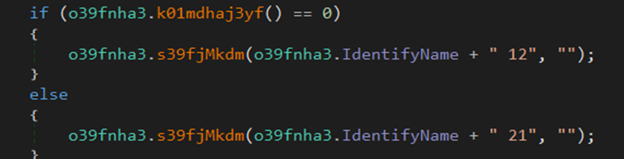 It then invokes the member function from the stealer with the name “JegrywbXVS” and passes to it a randomly generated name in the form