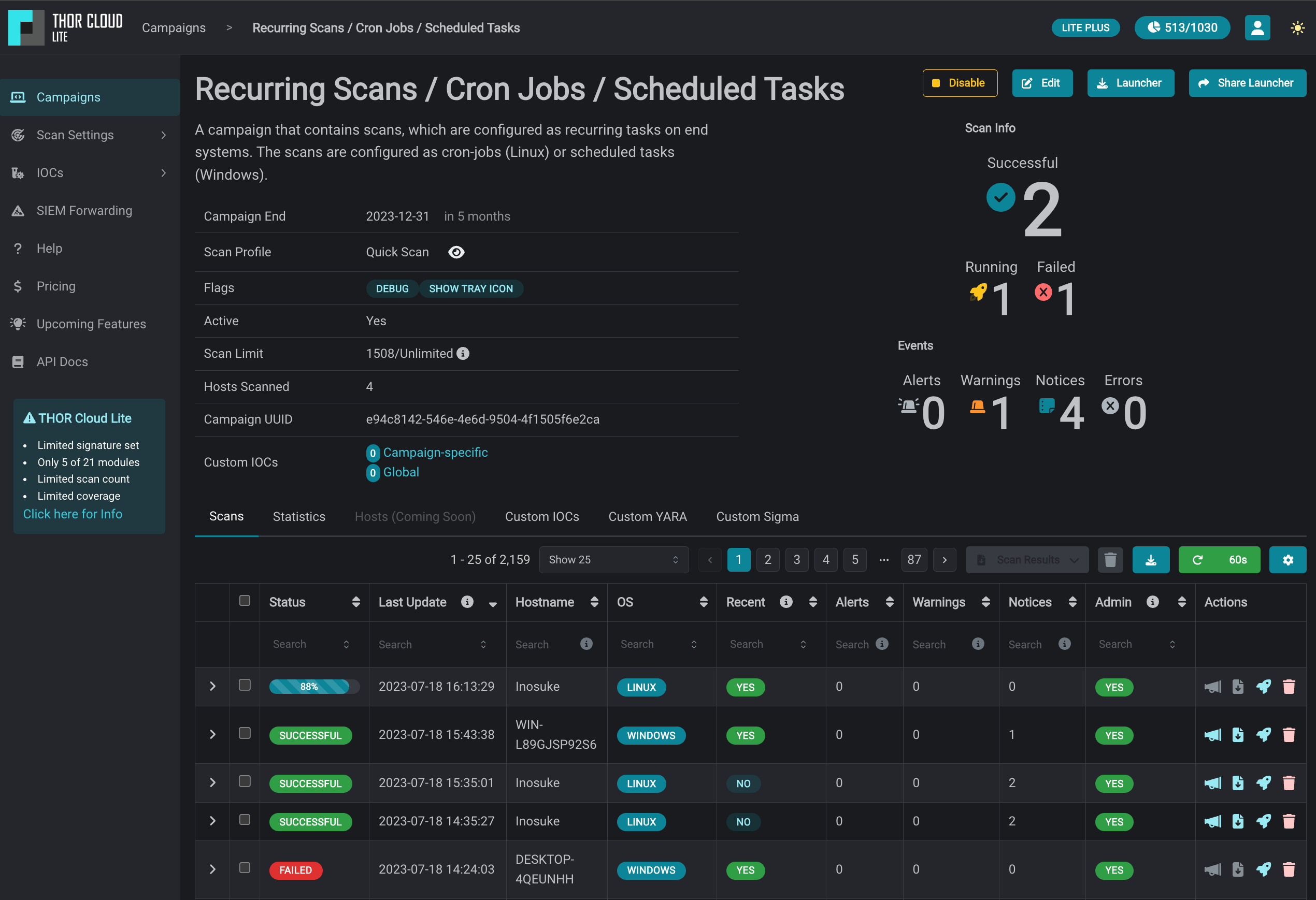 We just launched THOR-Cloud Lite our new free, lightweight and easy to deploy on-demand compromise assessment scanner. Allowing you to access your scans and reports from everywhere at any time. Licensing, scan campaigns and reports everything is conveniently managed in the new web-based user interface.