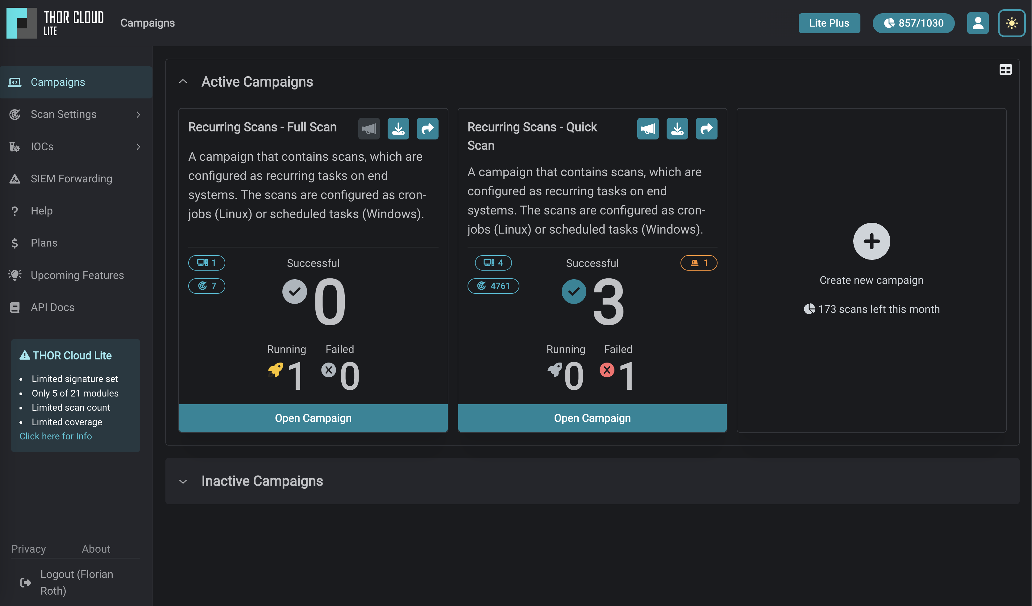 The free version of THOR Cloud includes the THOR Lite scanner and the open source signature set. A full version including the enterprise-grade THOR scanner with our full signature set will be launching in Q1 2024.