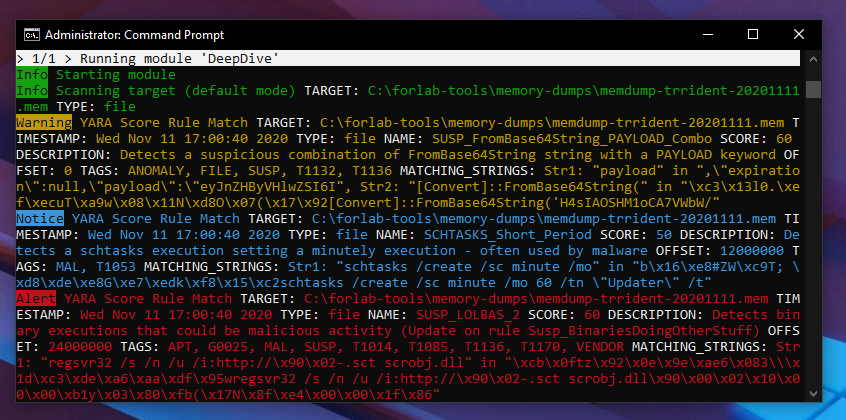 - Memory dump scanning (use the so-called DeepDive on dumped data, e.g. memory images)