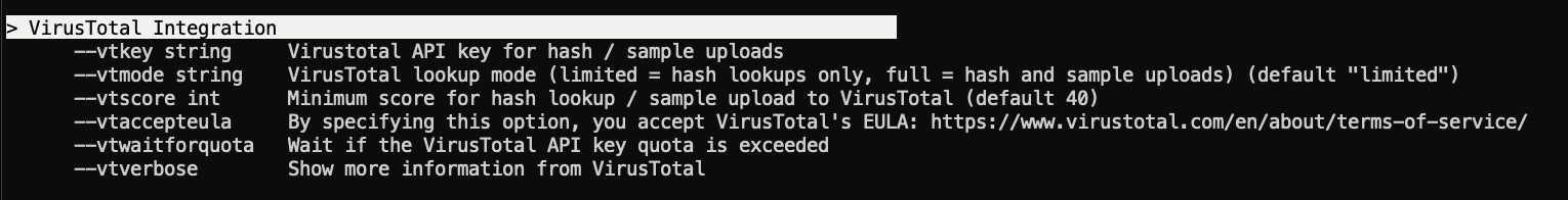 thor64.exe --vtaccepteula --vtkey fb2c3babb1796f97dcd0a877e05207294110bea8a9b93a933b...