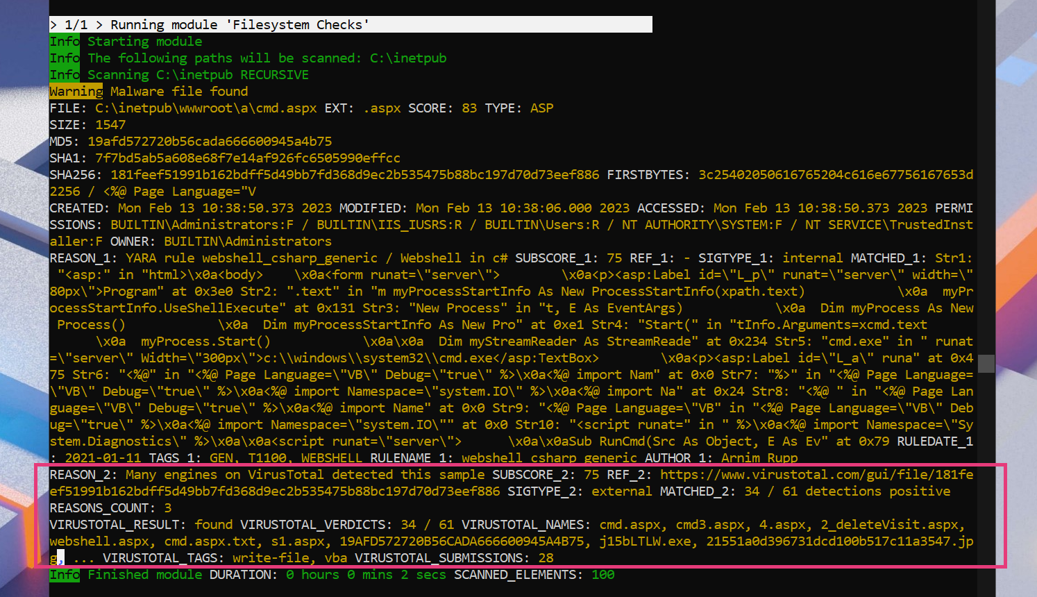 thor64.exe --vtaccepteula --vtkey fb2c3babb1796f97dcd0a877e05207294110bea8a9b93a933b... --lookback 1 -p C:\inetpub