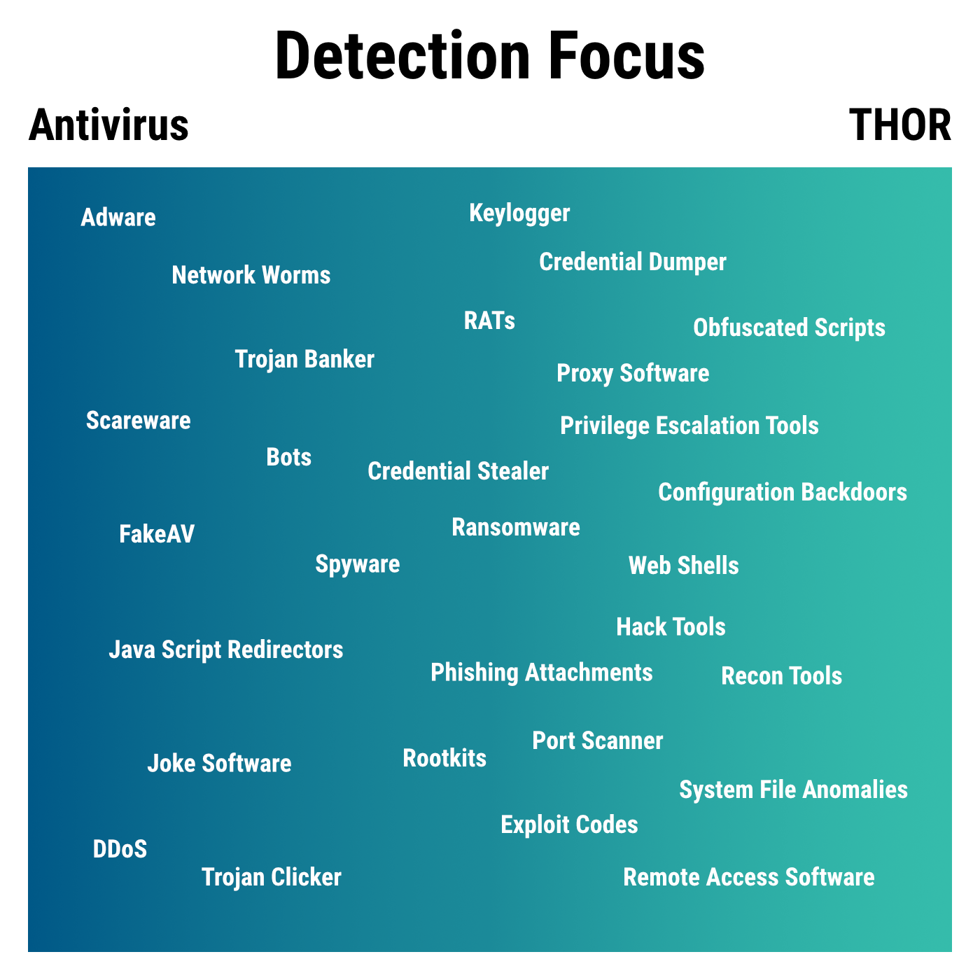No, that wouldn’t be smart, as THOR focuses on other types of threats that Antivirus software often is unable to detect. However, positive Antivirus matches increase the score for a scanned file depending on the number of Antivirus engines with matches.