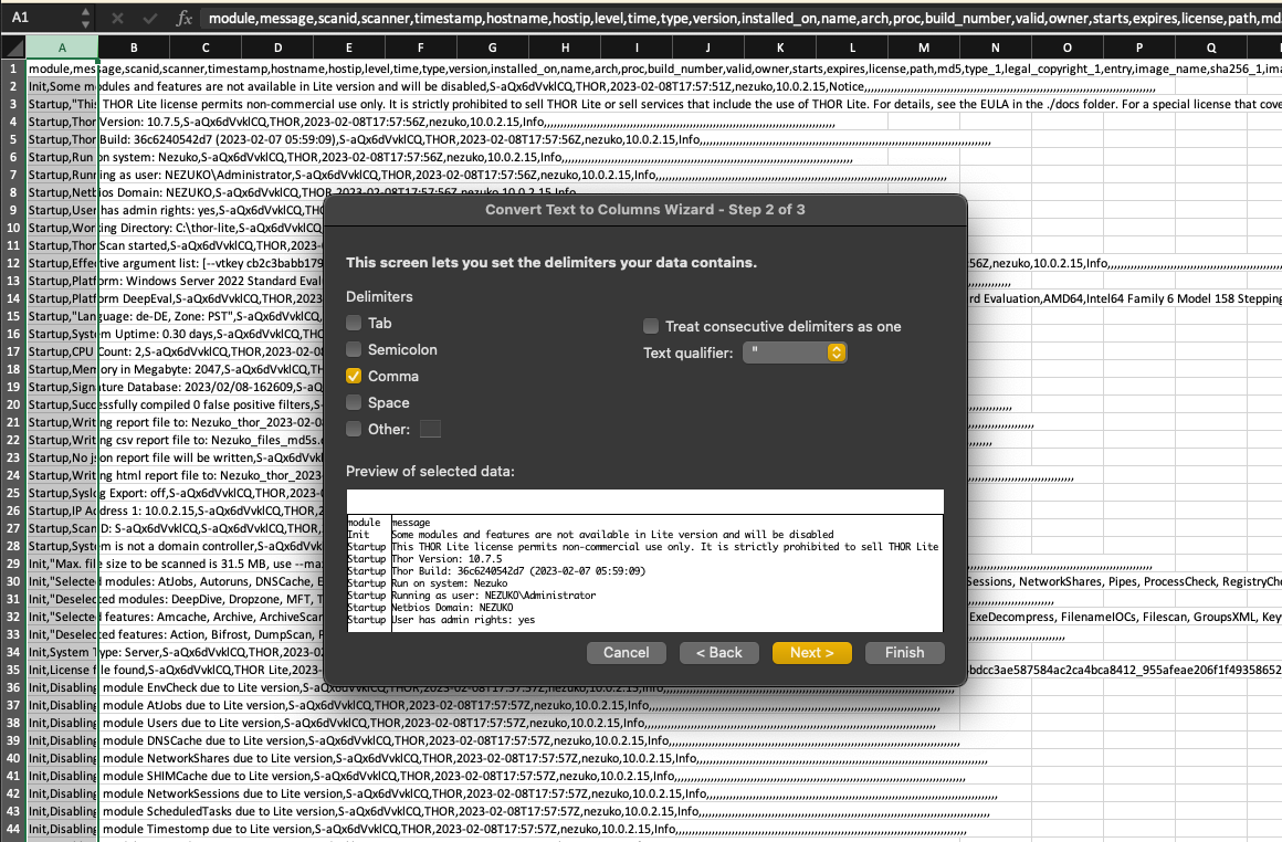 We are excited to announce that the upcoming version 1.11 our tool, THOR Util, now has the capability to convert log output files from both the default and JSON format into CSV files. This new feature will make it easier for users to analyze their log data and extract the information they need.
