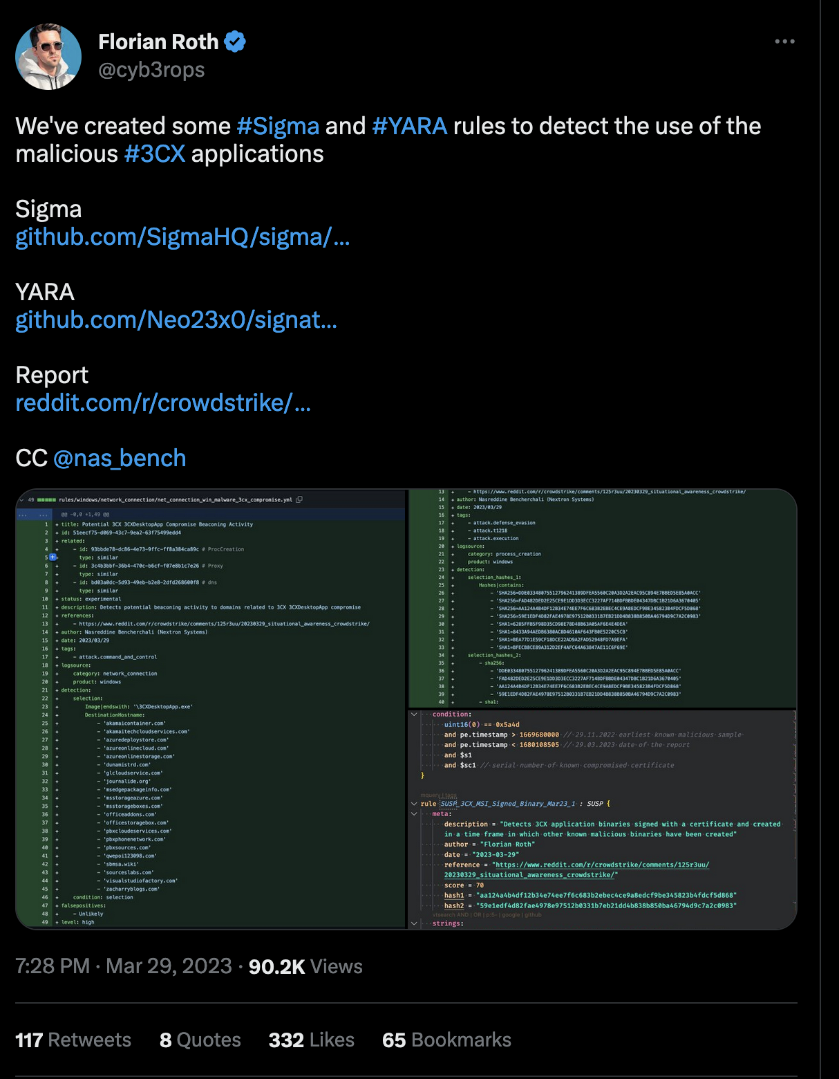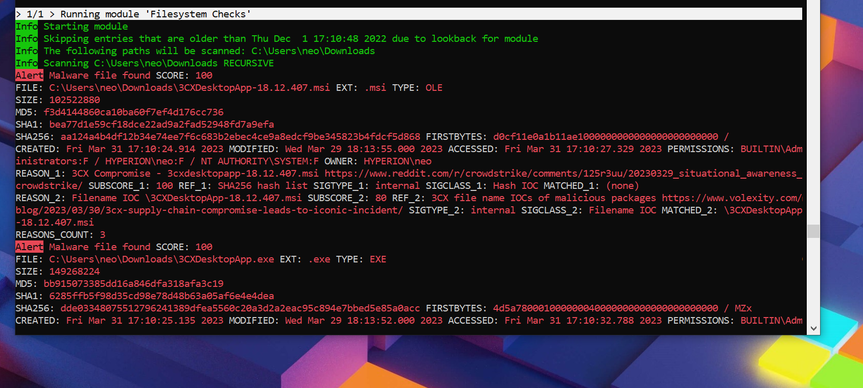 We’re constantly working on enhancing and updating the signatures related to the 3CX compromise. Updates are to be expected over the weekend and next week. To make sure THOR always works with the newest set of signatures use the following command: