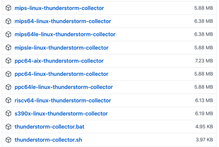 The Thunderstorm Collector repository contains a Go based collector, precompiled for many different operating systems and architectures as well as collectors scripts (Batch, Bash, PowerShell).