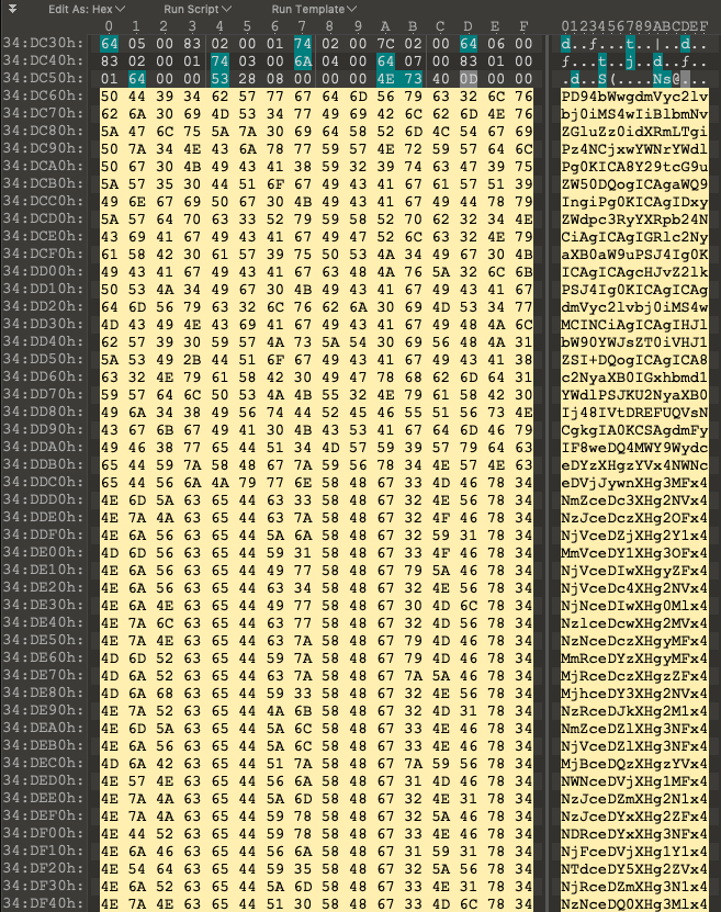 While looking at this code block you can see repeating patterns even before decoding it just by scrolling over it.