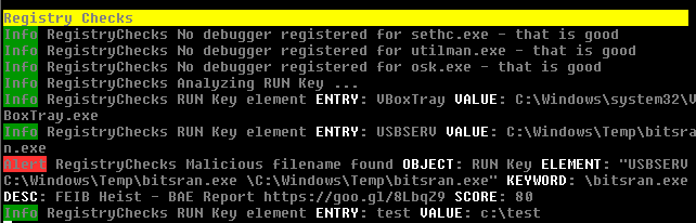 The Registry module applies the filename IOCs and THOR’s YARA rules for Registry detection to the loaded Registry and Registry Hives.