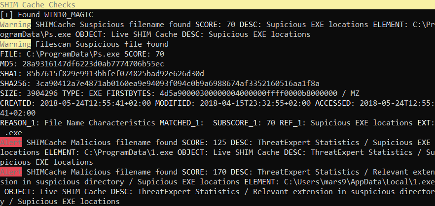 The SHIM Cache module analyses contents of the AppCompatCache on Windows systems, applies all filename IOCs, anomaly regex rules or just prints out all entries for your review. This module allows you to detect malicious or suspicious entries of programs that have been removed by adversaries long ago.
