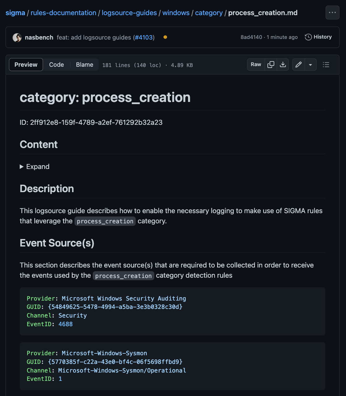 - Is “Process Creation” category using events “Sysmon/EventID 1” or maybe “Microsoft-Windows-Security-Auditing/EventID 4688”?