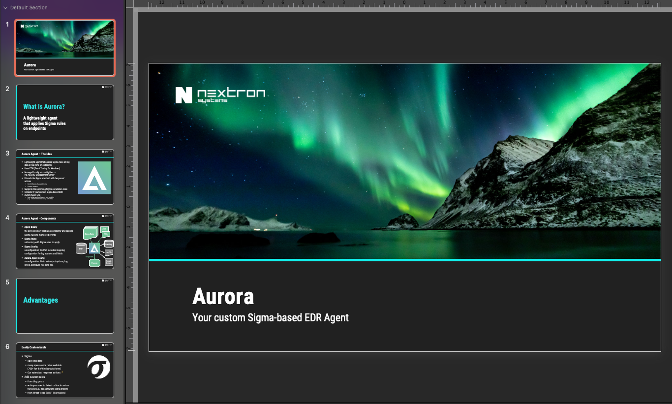 The following recorded video session includes information about our new Sigma-based EDR agent called “Aurora” and the free “Aurora Lite”. It’s a preview of the agent with information on its features, limits, advantages and a live demo.
