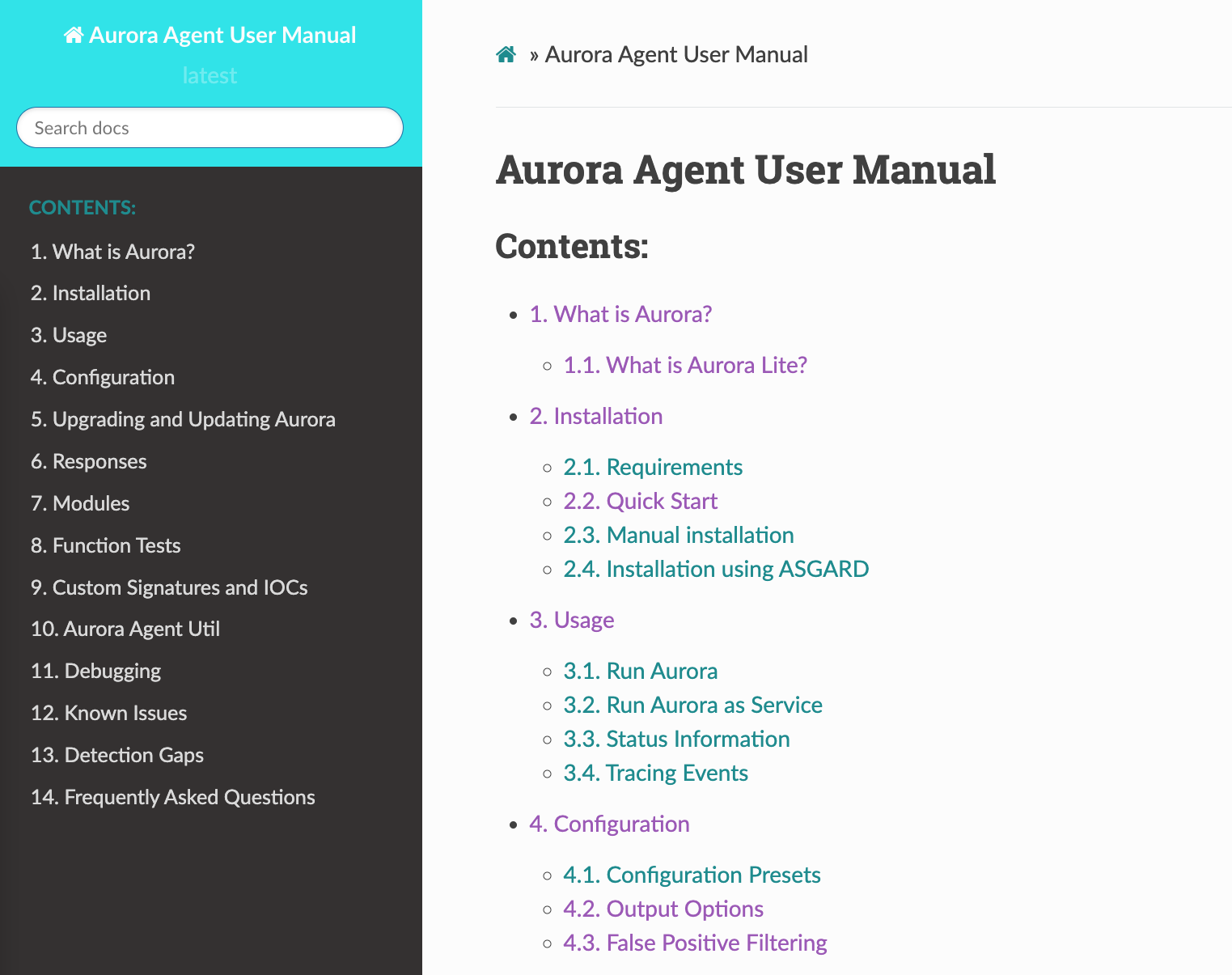 The Aurora Agent online manual can be found under this link.