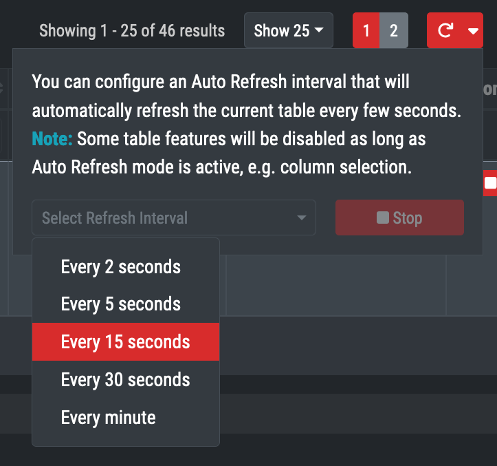 - All tables now have an option for an auto-refresh, which can be set per user and table (persistent setting by user)