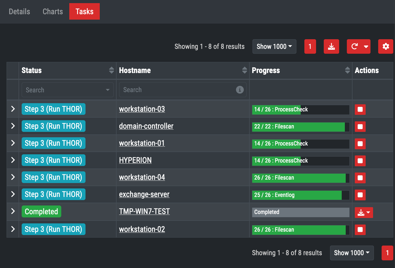 - Each THOR scan now shows a progress bar that doesn’t only show the state of completion but also the current module and element, the module progress and the amount of time spent on this module. This can help you to identify bottlenecks, issues or elements that should better be excluded from the scan.