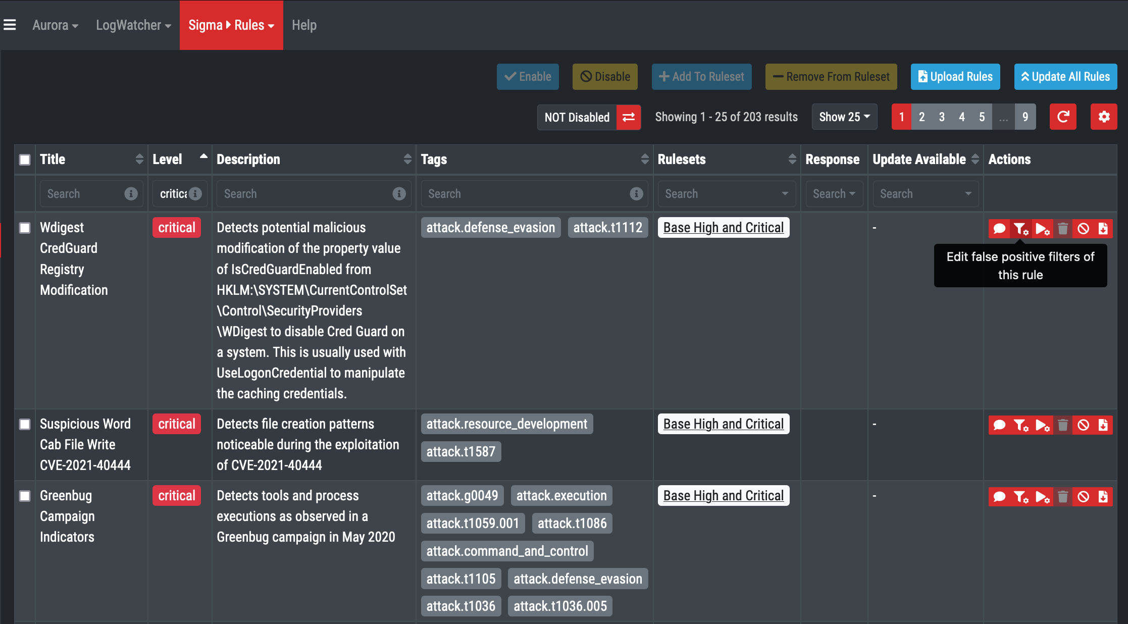 We’ve added new features and improved the usability of the sigma rule management section, which is relevant for the released LogWatcher agent and beta customers testing our new Aurora agent.