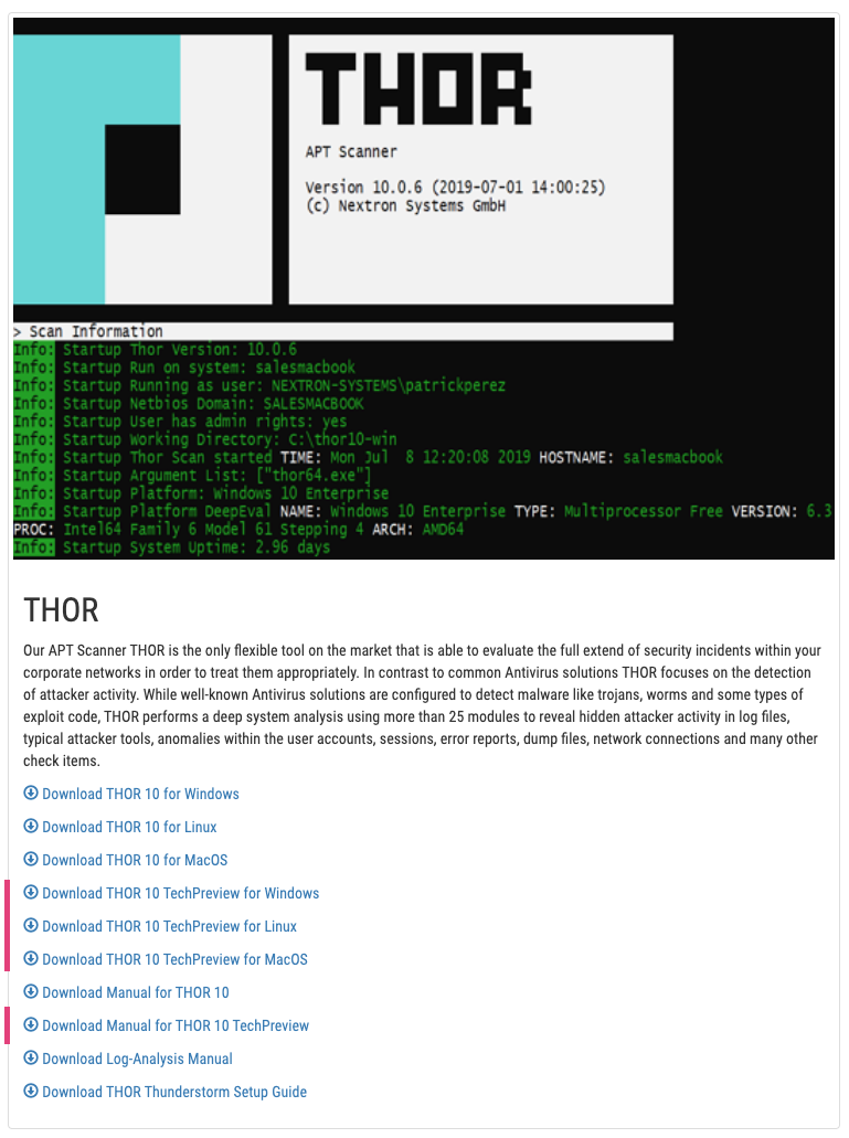 Customers can download the THOR TechPreview version 10.6 in the Downloads section of the customer portal or use thor-util in it’s newest version to download that version with the flag “–techpreview”. ASGARD version 2.5.3 also supports scan runs with THOR TechPreview.