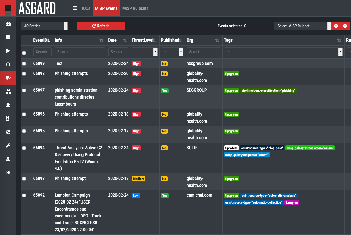 The new IOC management allows to interface with a MISP instance and create rule sets based on filters.