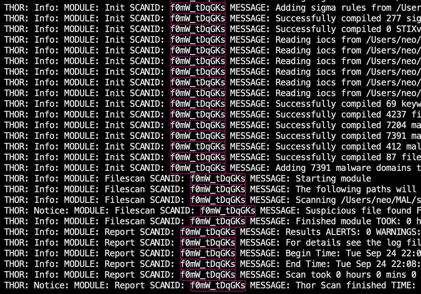 Previous versions of THOR offered a parameter -i / –case-id to set a unique identifier that appears as “CID: identifier” in all log lines of this specific scan.