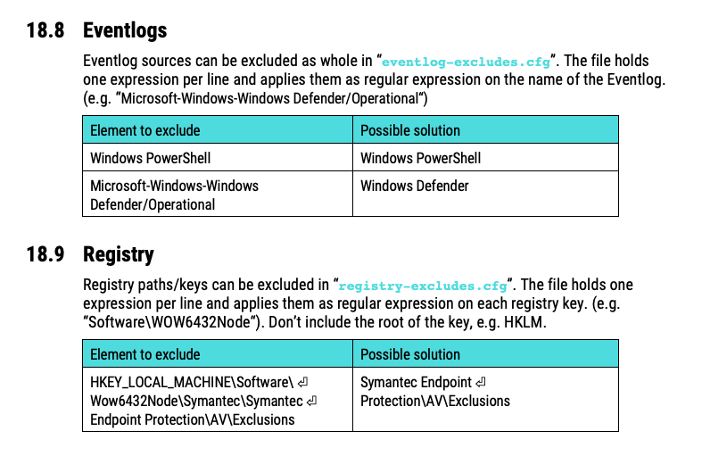 Users can now exclude certain Registry paths or Eventlogs from scanning.