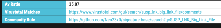 We’ve also added notes on the 2400+ rules that are available as open source in the signature-base repository on github, e.g. try SUSP_LNK_Big_Link_File.