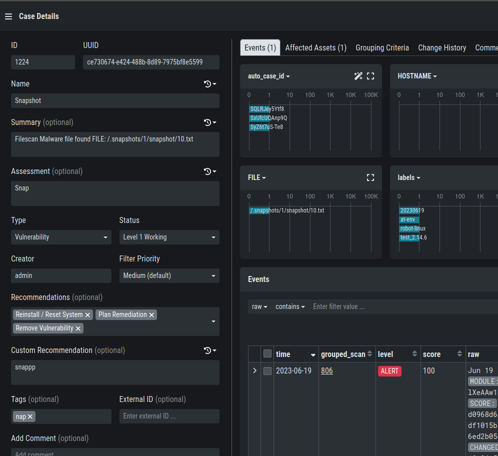 The Analysis Cockpit also features an integrated and highly configurable case management system that lets multiple analysts collaborate on the same investigation while ensuring the intended workflow progresses. Just like the ASGARD Management Center the Analysis Cockpit features a rich set of APIs that lets you connect to enterprise ticketing-systems, Sandboxes, CMDBs, SOAR Systems, threat intel platforms and literally any security device you may have in place.