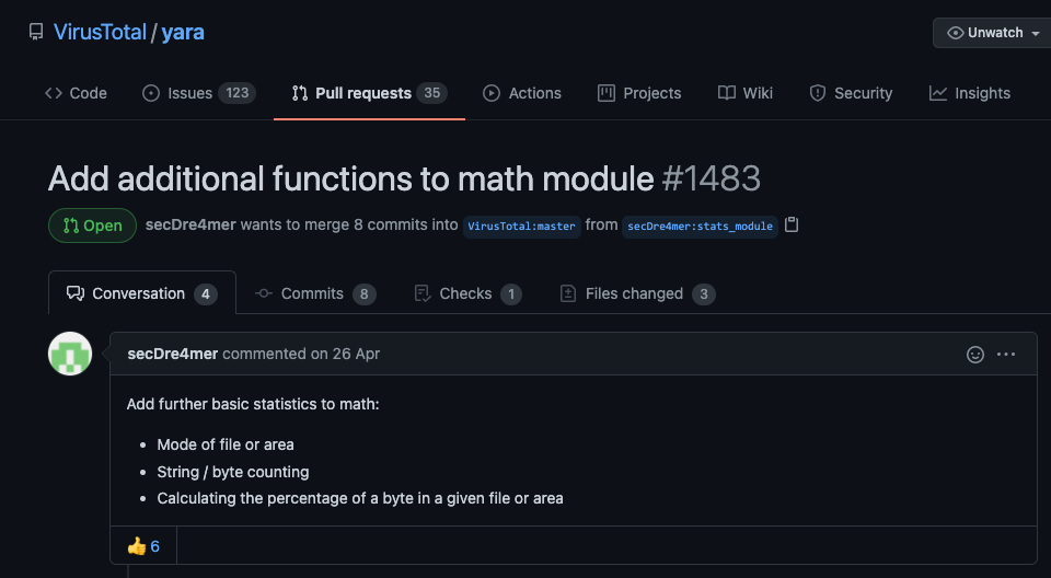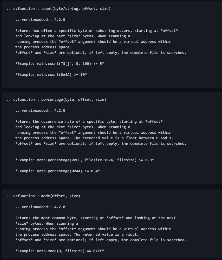 Not long ago, we’ve created a pull request for the official YARA repository on Github, that would introduce new functions in the `math` module to improve the flexibility in cases in which a sample is heavily scrambled or obfuscated. These cases require further statistical evaluations that go beyond the currently available “entropy”, “mean” or “deviation” functions.