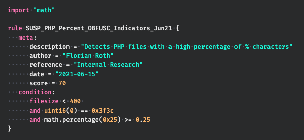 If you could, you would formulate a rule like this: “Detect files smaller 400 bytes, that begin with ‘<?’ and consist of at least 25 percent ‘%’ characters”.