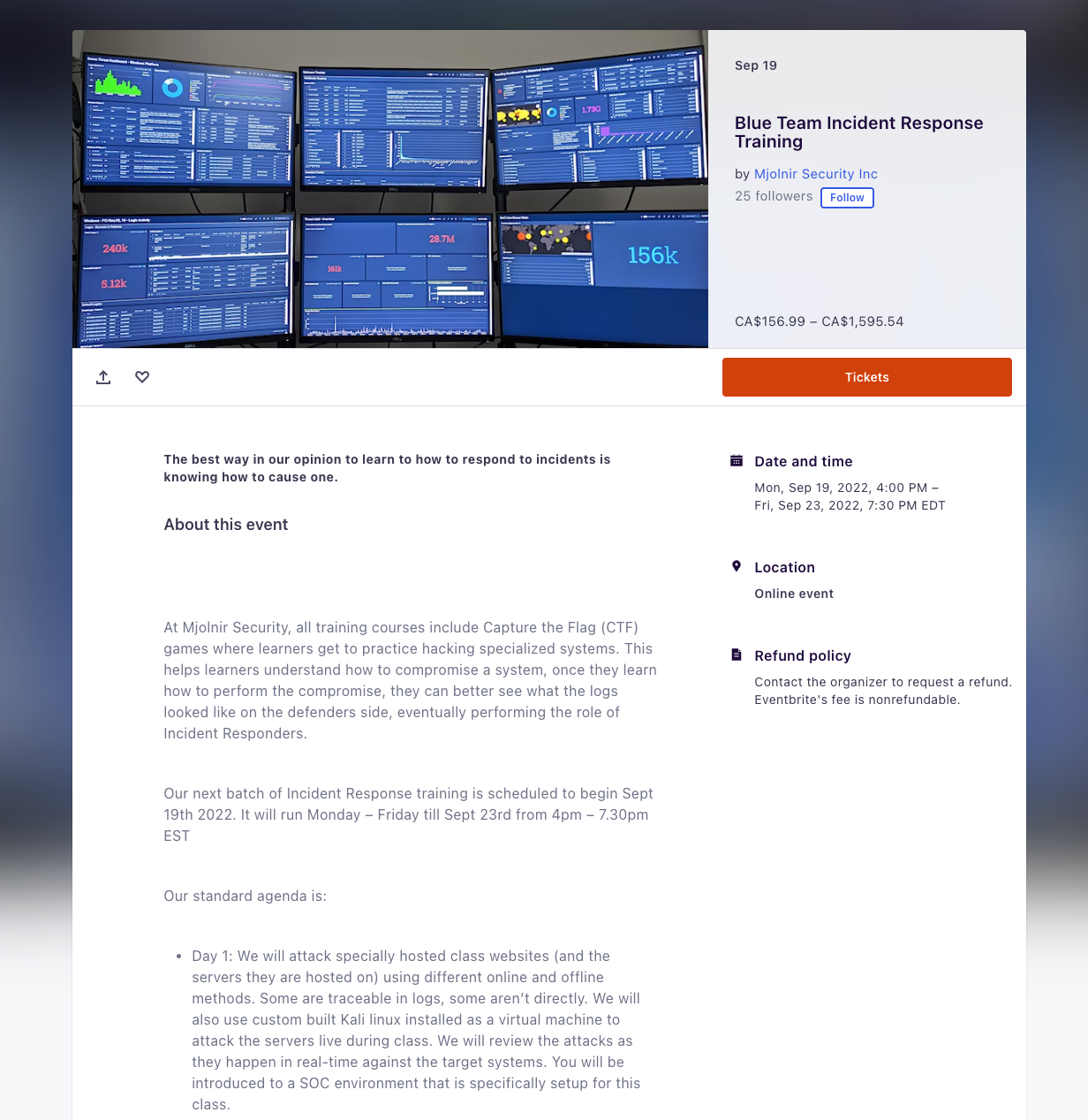 Registration URL: https://www.eventbrite.ca/e/blue-team-incident-response-training-tickets-393153361287