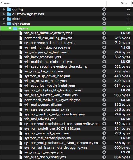 We ship the current rule set, which is part of the public Sigma repository and contains more than 200 rules with our SPARK program package in an encrypted form. (*.yms)