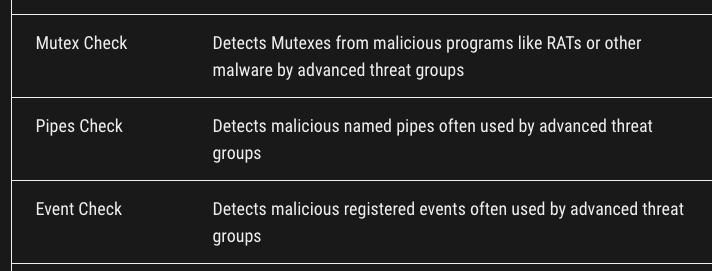 The “Events” module extends our set of rootkit related modules that already include the “Mutex” and “Named Pipe” modules.