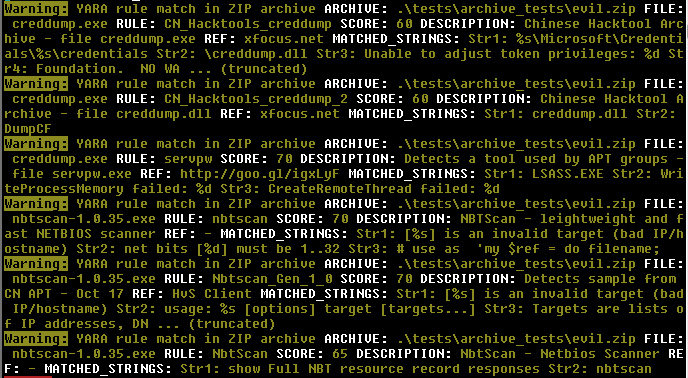 Until today the ZIP file checks were limited to file name IOC or anomaly checks. The new version 8.44.2 supports the scanning of ZIP file contents with the YARA rule base. However, for the time being the ZIP YARA scanning has some limitations: