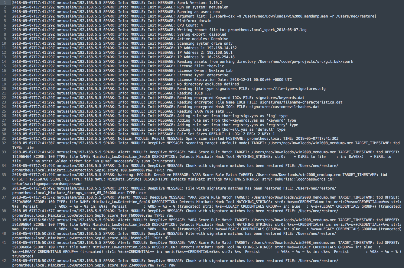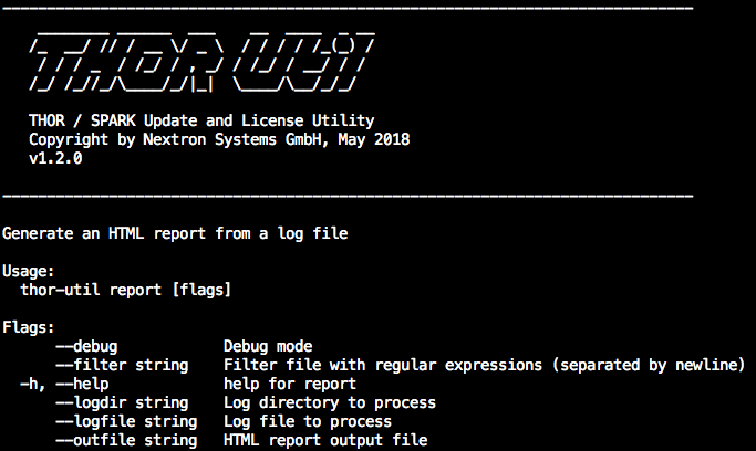 The new version of “thor-util” (used with THOR/SPARK) / “spark-core-util” (used with SPARK Core) support a feature that allows a user to convert any scanner log file into a convenient report.