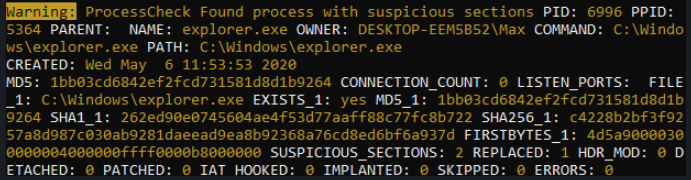 With the integration of @hasharezade‘s PE Sieve project THOR is able to detect and report a variety of process implants like replaced or injected portable executables (process hollowing), injected shellcodes, hooks and in-memory patches.