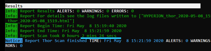 We’ve extended this feature to include all applicable modules, including “FileScan”, “Registry”, “Services”, “Registry Hives” and “EVTX Scan”. By setting the flags “–global-lookback –lookback 2” you instruct THOR to scan only elements that have been created or modified during the last 2 days. This reduces the scan duration significantly.