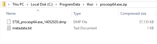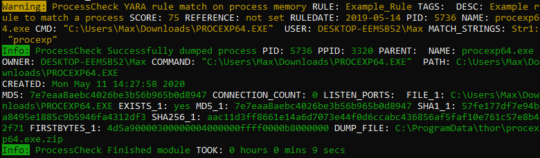 THOR v10.5 creates a process dump of any process that is considered suspicious or malicious.