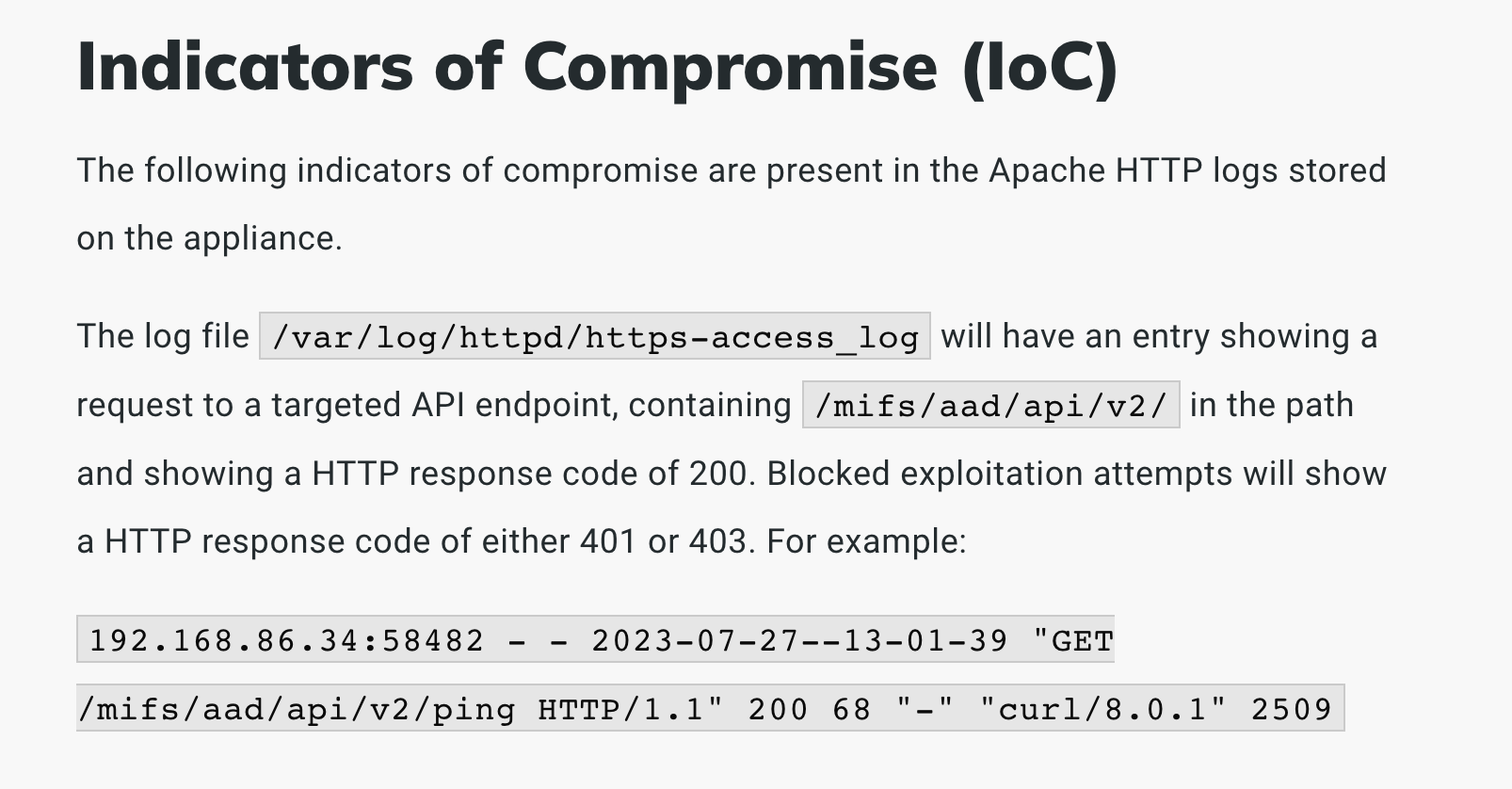 We created the log detection rule by analyzing a report that was shared under TLP:AMBER with affected parties. The rule relies on the URI path and the status code returned by a successfully exploited service.