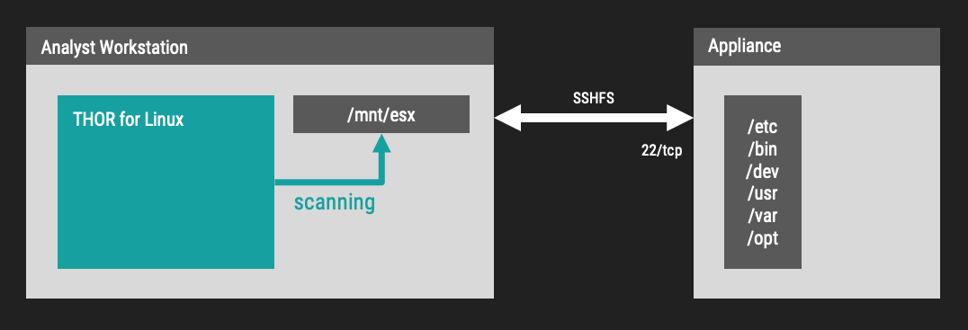 So, we plan to mount the remote file system using SSH (SSHFS) and then we instruct THOR to scan the mounted remote filesystem.