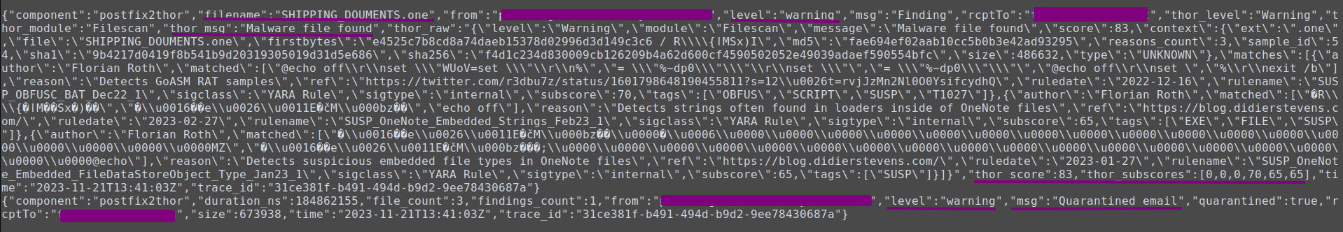 The Postfix mail server is a popular and highly configurable Mail Transfer Agent (MTA) used for routing and delivering email messages within a network or across the Internet. Similar to the Sendmail MTA, it can use Milter (protocol) to scan incoming emails for spam or malware. On incoming emails, compatible MTAs use the Milter protocol to communicate with an extra service, which also speaks the Milter protocol. This extra service scans the email and responds with its findings. Based on the response of the extra service the MTA can filter, discard, or quarantine the email. In this blog post, we are releasing an open-source implementation of a Milter Service called “postfix2thunderstorm” which allows you to scan emails using THOR Thunderstorm: https://github.com/NextronSystems/postfix2thunderstorm .