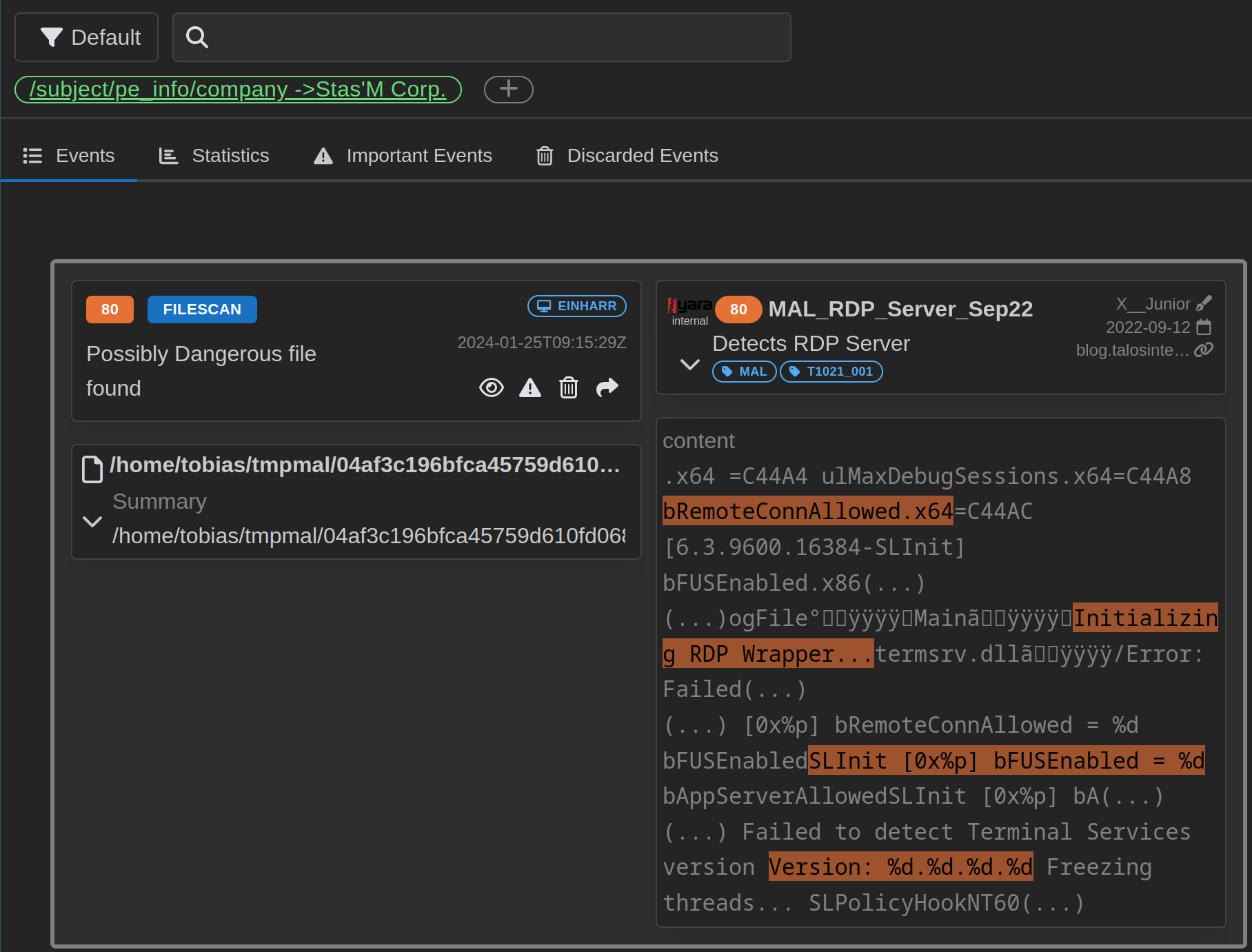 - Utilizes a vast signature database with over 30,000 YARA rules, 2,000 Sigma rules, and thousands of IOCs, ensuring thorough detection and analysis of security threats.